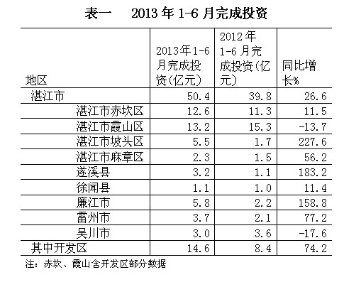 2013年上半年,隨著湛江經(jīng)濟的增長,房地產(chǎn)業(yè)發(fā)展情況總體良好,開發(fā)資金充足,施工面積增長較快,商品房屋銷售增幅明顯,房地產(chǎn)開發(fā)投資呈現(xiàn)穩(wěn)定增長的發(fā)展態(tài)勢。